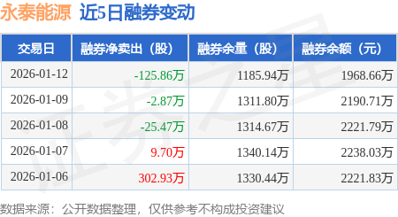 证券之星消息,1月12日,永泰能源(600157)融资买入3.17亿元,融资偿还2.99亿元,融资净买入1844.74万元,融资余额13.67亿元,近3个交易日已连续净买入累计6992.95万元。
