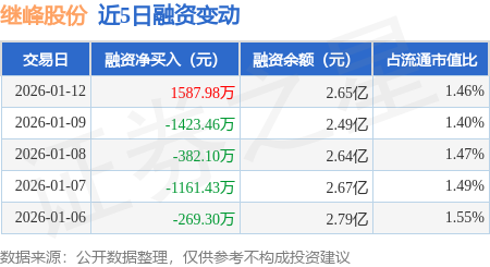 证券之星消息,1月12日,继峰股份(603997)融资买入4641.38万元,融资偿还3053.4万元,融资净买入1587.98万元,融资余额2.65亿元。