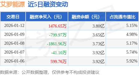 证券之星消息,1月12日,艾罗能源(688717)融资买入5553.83万元,融资偿还4077.18万元,融资净买入1476.65万元,融资余额3.8亿元。