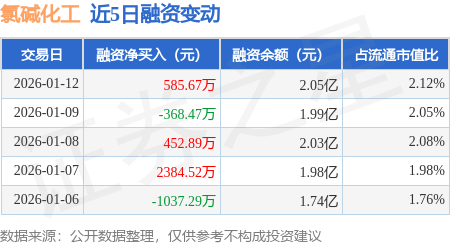 证券之星消息,1月12日,氯碱化工(600618)融资买入2629.49万元,融资偿还2043.82万元,融资净买入585.67万元,融资余额2.05亿元。