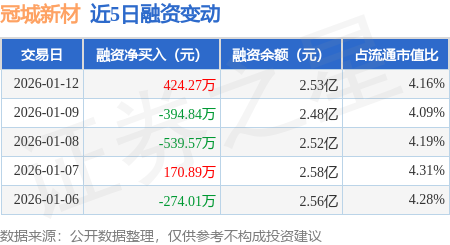 证券之星消息,1月12日,冠城新材(600067)融资买入2030.36万元,融资偿还1606.09万元,融资净买入424.27万元,融资余额2.53亿元,近20个交易日中有12个交易日出现融资净买入。