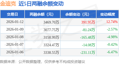 证券之星消息,1月12日,金迪克(688670)融资买入910.84万元,融资偿还518.89万元,融资净买入391.95万元,融资余额3469.7万元。