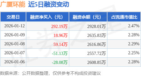 证券之星消息,1月12日,广厦环能(920703)融资买入424.39万元,融资偿还132.2万元,融资净买入292.19万元,融资余额2928.01万元,近3个交易日已连续净买入累计370.29万元,近20个交易日中有13个交易日出现融资净买入。