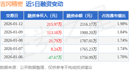 证券之星消息,1月12日,吉冈精密(920720)融资买入442.58万元,融资偿还226.61万元,融资净买入215.97万元,融资余额2116.17万元,近3个交易日已连续净买入累计350.94万元。