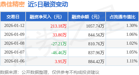 证券之星消息,1月12日,鼎佳精密(920005)融资买入321.63万元,融资偿还108.45万元,融资净买入213.18万元,融资余额1057.74万元,近20个交易日中有12个交易日出现融资净买入。