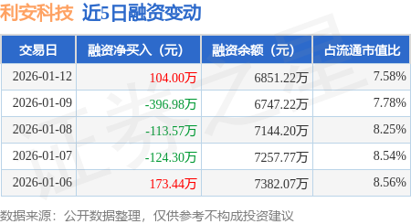 证券之星消息,1月12日,利安科技(300784)融资买入1063.03万元,融资偿还959.03万元,融资净买入104.0万元,融资余额6851.22万元。