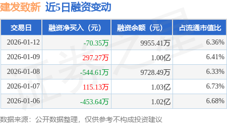 证券之星消息,1月12日,建发致新(301584)融资买入1340.06万元,融资偿还1410.41万元,融资净卖出70.35万元,融资余额9955.41万元。