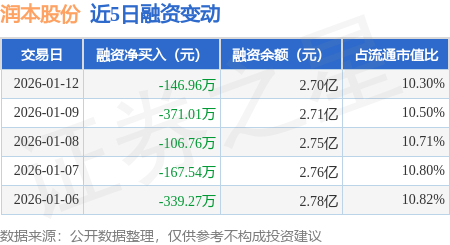 证券之星消息,1月12日,润本股份(603193)融资买入792.74万元,融资偿还939.7万元,融资净卖出146.96万元,融资余额2.7亿元。