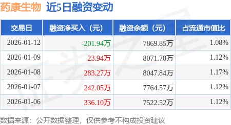 证券之星消息,1月12日,药康生物(688046)融资买入846.72万元,融资偿还1048.66万元,融资净卖出201.94万元,融资余额7869.85万元,近20个交易日中有12个交易日出现融资净买入。