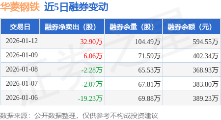 证券之星消息,1月12日,华菱钢铁(000932)融资买入5978.26万元,融资偿还6227.06万元,融资净卖出248.8万元,融资余额6.63亿元。