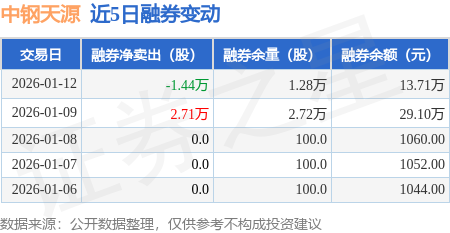 证券之星消息,1月12日,中钢天源(002057)融资买入4603.85万元,融资偿还4920.07万元,融资净卖出316.22万元,融资余额4.21亿元。