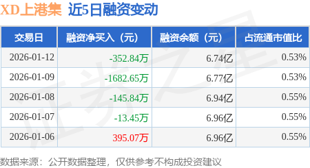 证券之星消息,1月12日,XD上港集(600018)融资买入1625.64万元,融资偿还1978.48万元,融资净卖出352.84万元,融资余额6.74亿元,近20个交易日中有13个交易日出现融资净买入。
