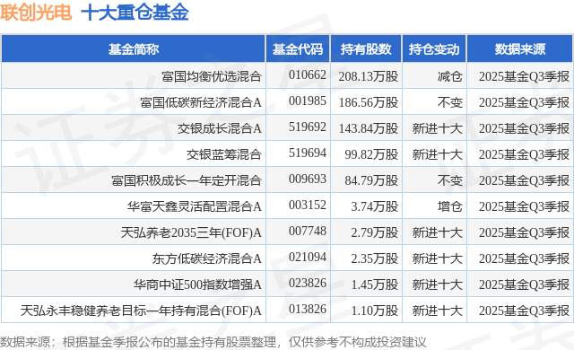 重仓联创光电的前十大公募基金请见下表: