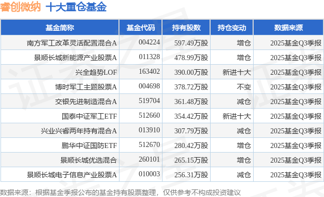 重仓睿创微纳的前十大公募基金请见下表: