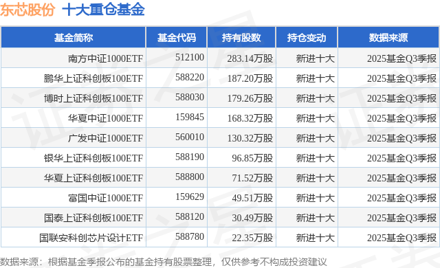 重仓东芯股份的前十大公募基金请见下表: