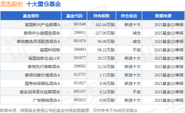 根据2025基金Q3季报公募基金重仓股数据,重仓该股的公募基金共10家,其中持有数量最多的公募基金为富国基金的富国新兴产业股票A。富国新兴产业股票A目前规模为60.77亿元,最新净值4.047(1月12日),较上一交易日上涨0.47%,近一年上涨78.44%。该公募基金现任基金经理为孙权。孙权在任的基金产品包括:富国创新企业灵活配置混合(LOF)A,管理时间为2022年7月28日至今,期间收益率为48.76%。