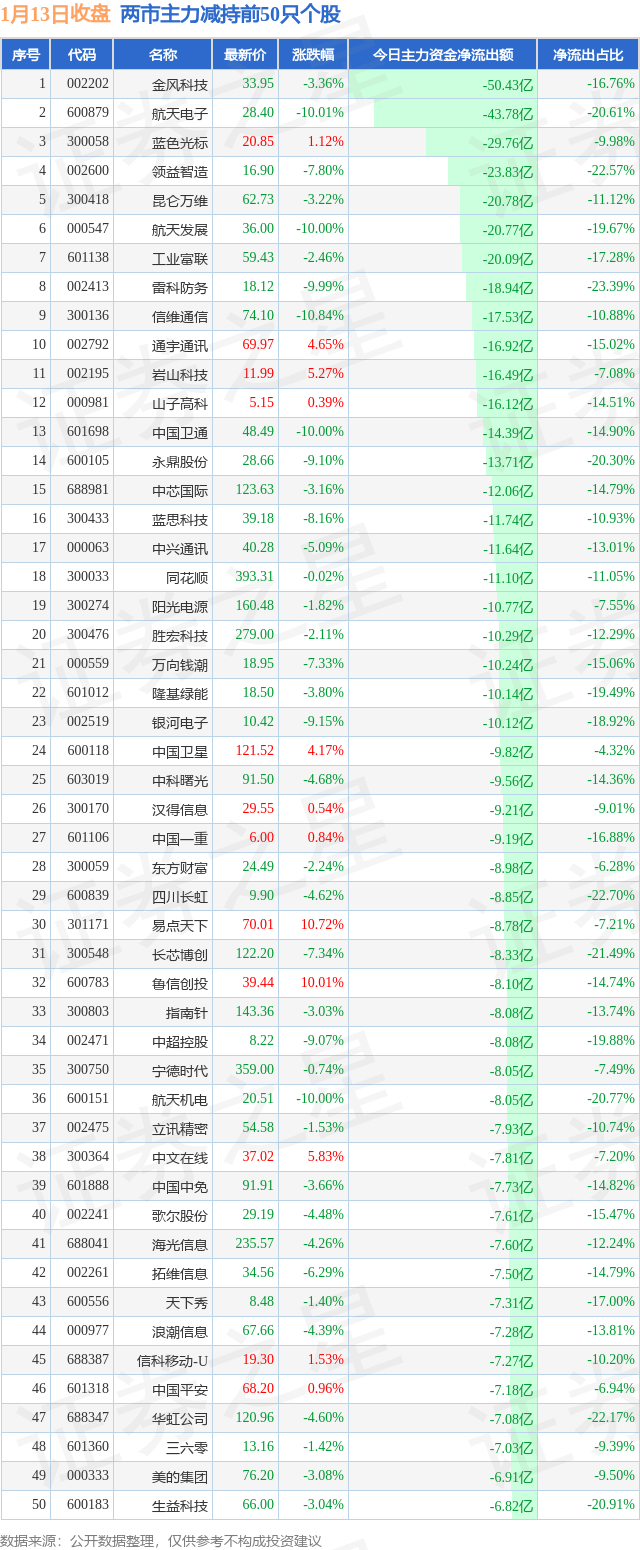 两市主力减持最多的前十只个股为: