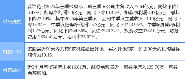 2025年10月23日,开源证券研究员余汝意,阮帅发布了对普洛药业的研报《公司信息更新报告:CDMO业务维持较快增长,在手订单规模较大》,该研报对普洛药业给出“买入”评级。研报中预计2025-2027年归母净利润为9/11.89/14.95亿元,当前股价对应PE为19.6/14.8/11.8倍,估值性价比高,考虑公司CDMO业务较快增长且在手订单规模较大,维持“买入”评级。证券之星数据中心根据近三年发布的研报数据计算,该研报作者对此股的盈利预测准确度为79.61%。