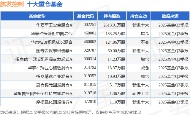 根据2025基金Q3季报公募基金重仓股数据,重仓该股的公募基金共11家,其中持有数量最多的公募基金为华夏基金的华夏军工安全混合A。华夏军工安全混合A目前规模为33.97亿元,最新净值2.499(1月12日),较上一交易日上涨5.89%,近一年上涨95.39%。该公募基金现任基金经理为万方方。