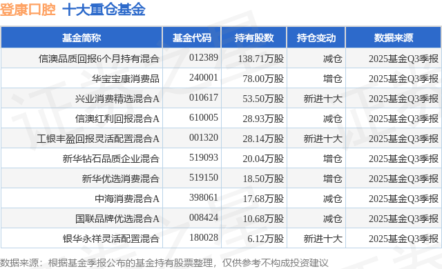 重仓登康口腔的前十大公募基金请见下表:
