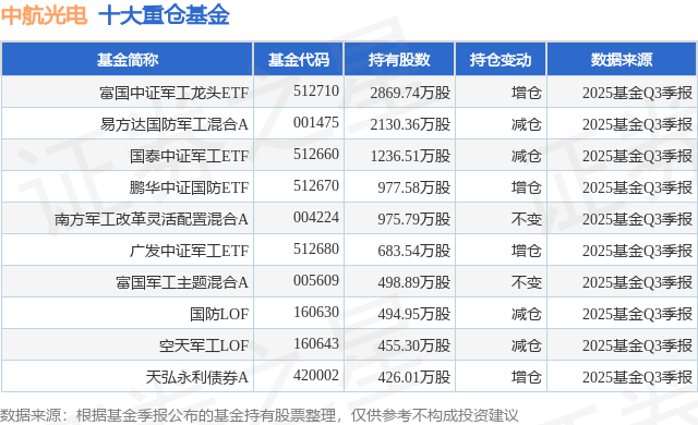 根据2025基金Q3季报公募基金重仓股数据,重仓该股的公募基金共89家,其中持有数量最多的公募基金为富国基金的富国中证军工龙头ETF。富国中证军工龙头ETF目前规模为146.9亿元,最新净值0.9561(1月12日),较上一交易日上涨6.21%,近一年上涨64.59%。该公募基金现任基金经理为王乐乐 牛志冬。王乐乐在任的基金产品包括:富国中证消费50ETF,管理时间为2019年10月14日至今,期间收益率为19.57%;富国中证科技50策略ETF,管理时间为2019年11月15日至今,期间收益率为95.31%;富国中证科技50策略ETF联接A,管理时间为2020年2月20日至今,期间收益率为47.33%。牛志冬在任的基金产品包括:富国中证移动互联网指数(LOF)A,管理时间为2015年5月13日至今,期间收益率为3.02%;富国中证医药主题指数增强A,管理时间为2016年11月11日至今,期间收益率为51.86%;富国中证娱乐主题指数增强(LOF)A,管理时间为2017年3月13日至今,期间收益率为-12.99%;