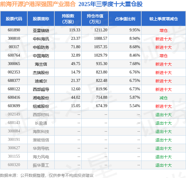 前海开源沪港深强国产业混合的前十大重仓股如下: