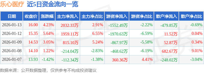 证券之星消息,截至2026年1月13日收盘,乐心医疗(300562)报收于16.0元,上涨4.23%,换手率26.86%,成交量43.56万手,成交额6.98亿元。