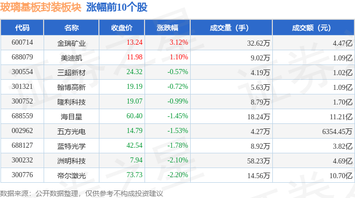 从资金流向上来看,当日玻璃基板封装板块主力资金净流出15.55亿元,游资资金净流入6.0亿元,散户资金净流入9.55亿元。玻璃基板封装板块个股资金流向见下表: