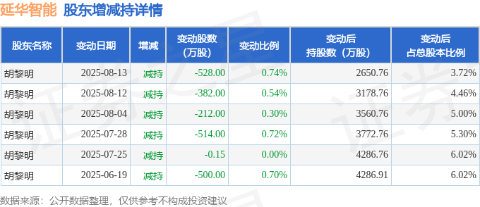 该股近半年内有股东持股变动,合计净减持2136.15万股,股东增减持明细如下表: