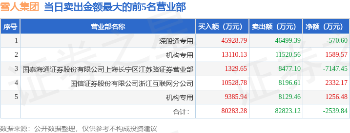 证券之星消息,沪深交易所2026年1月13日公布的交易公开信息显示,雪人集团(002639)因日换手率达到20%的前5只证券登上龙虎榜。此次是近5个交易日内第5次上榜。