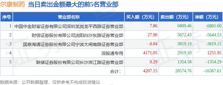证券之星消息,沪深交易所2026年1月13日公布的交易公开信息显示,尔康制药(300267)因日涨幅达到15%的前5只证券登上龙虎榜。此次是近5个交易日内第1次上榜。