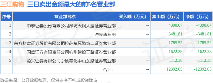证券之星消息,沪深交易所2026年1月13日公布的交易公开信息显示,三江购物(601116)因非ST、*ST和S证券连续三个交易日内收盘价格涨幅偏离值累计达到20%的证券登上龙虎榜。此次是近5个交易日内第1次上榜。