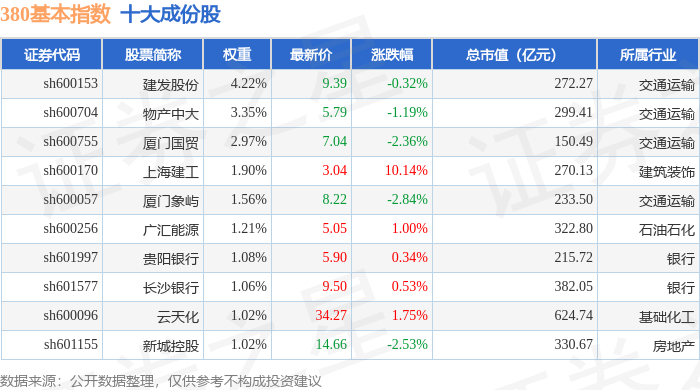 资金流向方面,380基本(000128)指数成份股当日主力资金净流出合计188.87亿元,游资资金净流入合计48.38亿元,散户资金净流入合计140.5亿元。成份股资金流向详情见下表: