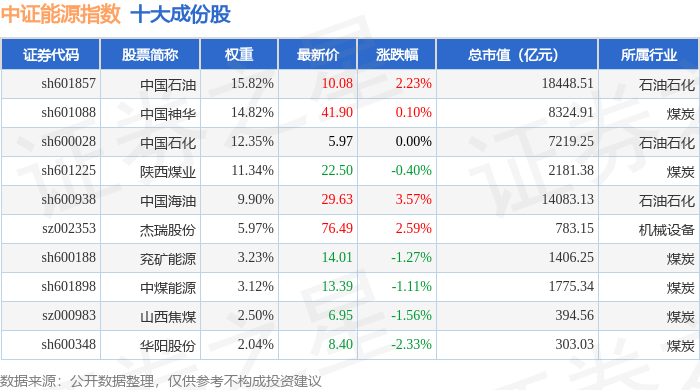 资金流向方面,中证能源(000928)指数成份股当日主力资金净流入合计1.59亿元,游资资金净流入合计3931.9万元,散户资金净流出合计1.98亿元。成份股资金流向详情见下表: