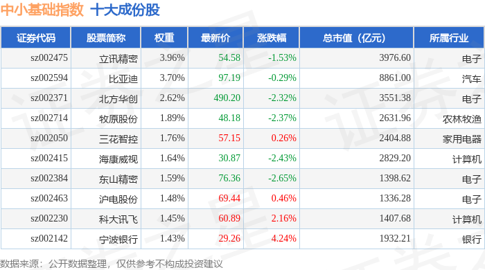 中小基础(399623)指数十大成份股详情如下: