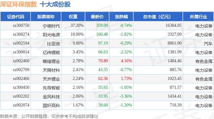深证环保(399638)指数十大成份股详情如下: