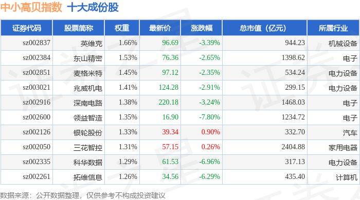 证券之星消息,1月13日,中小高贝(399664)指数报收于1598.84点,跌2.31%,成交2345.82亿元,换手率6.55%。当日该指数成份股中,上涨的有16家,利欧股份以9.99%的涨幅领涨,下跌的有83家,普利特以10.0%的跌幅领跌。