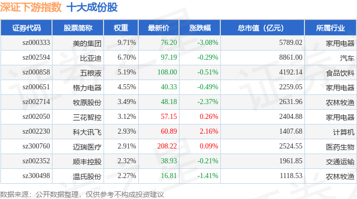 深证下游(399706)指数十大成份股详情如下: