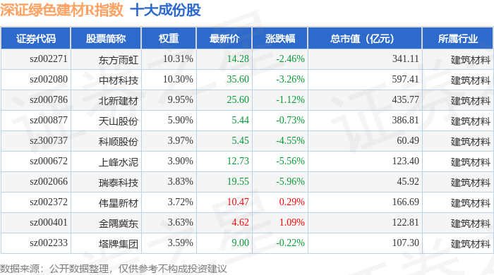 深证绿色建材R(470077)指数十大成份股详情如下: