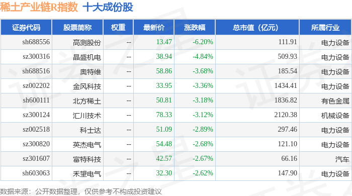 资金流向方面,稀土产业链R(489013)指数成份股当日主力资金净流出合计78.04亿元,游资资金净流入合计18.47亿元,散户资金净流入合计59.57亿元。成份股资金流向详情见下表: