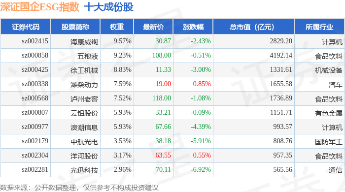 深证国企ESG(970055)指数十大成份股详情如下: