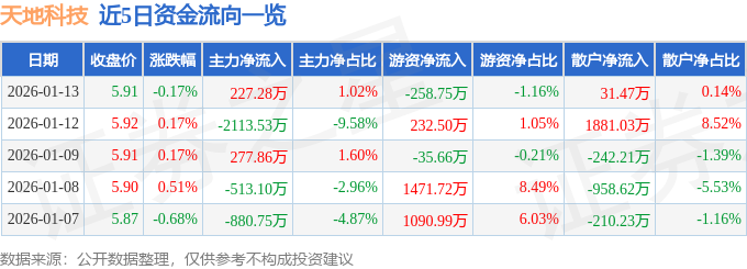 1月13日的资金流向数据方面,主力资金净流入227.28万元,占总成交额1.02%,游资资金净流出258.75万元,占总成交额1.16%,散户资金净流入31.47万元,占总成交额0.14%。