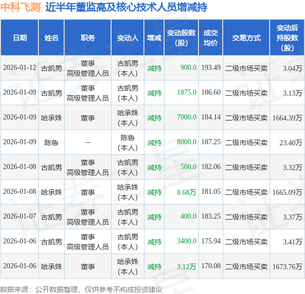 中科飞测近半年内的董监高及核心技术人员增减持详情如下:
