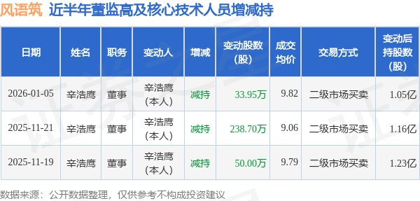 风语筑近半年内的董监高及核心技术人员增减持详情如下: