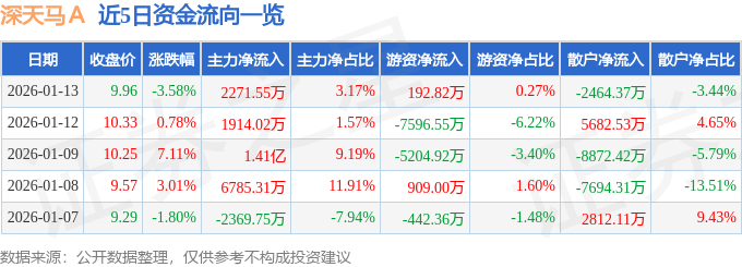 证券之星消息,截至2026年1月13日收盘,深天马A(000050)报收于9.96元,下跌3.58%,换手率2.9%,成交量71.19万手,成交额7.17亿元。