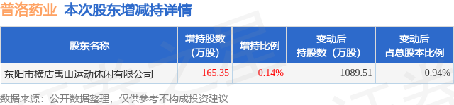 证券之星消息,1月13日普洛药业发布公告《普洛药业:关于控股股东一致行动人增持公司股份权益变动触及1%整数倍及后续增持计划的公告》,其股东东阳市横店禹山运动休闲有限公司于2026年1月13日合计增持165.35万股,占公司目前总股本的0.1427%,变动期间该股股价上涨9.48%,截止1月13日收盘报17.79元。