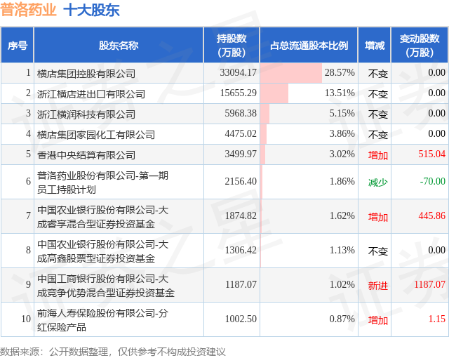 根据普洛药业2025年三季报公布的十大股东详情如下: