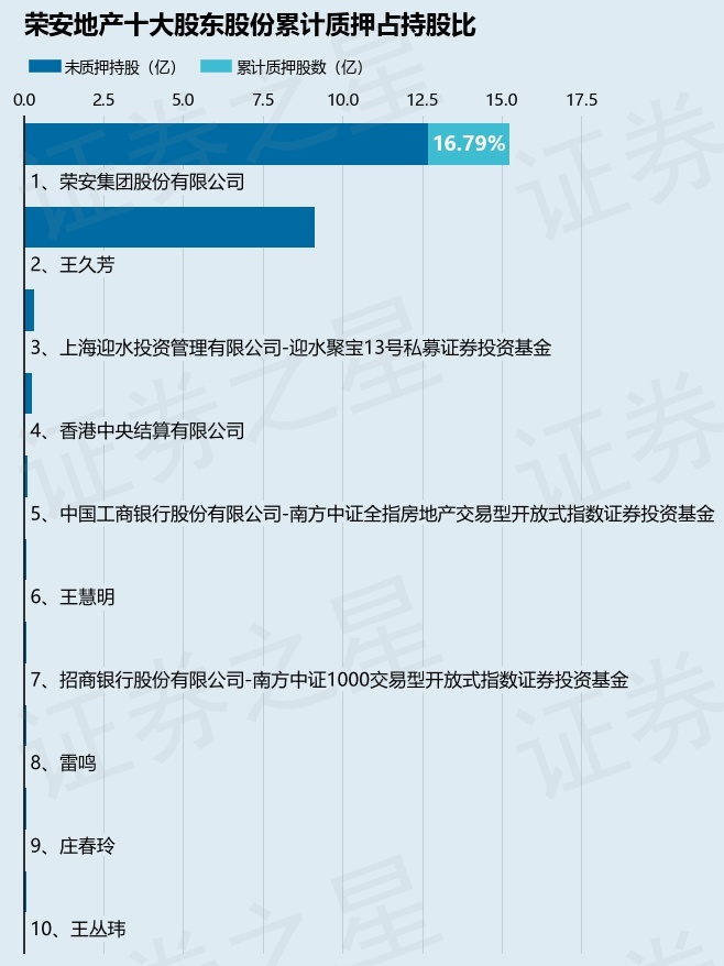 截止本公告日,股东荣安集团股份有限公司已累计质押股份2.56亿股,占其持股总数的16.79%。本次质押后荣安地产十大股东的累计质押股份占持股比例(占持股比例的计算以公司最新一期财务报表公布的十大股东的持股总数为基准)见下图: