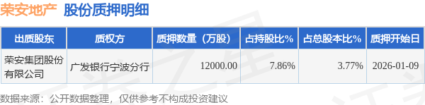 证券之星消息,荣安地产(000517)1月14日公开信息显示,股东荣安集团股份有限公司向广发银行宁波分行合计质押1.2亿股,占总股本3.77%。质押详情见下表: