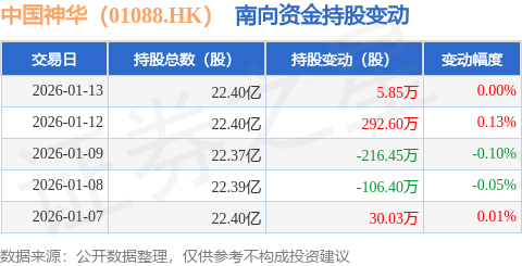 证券之星消息,1月13日南向资金增持5.85万股中国神华(01088.HK)。近5个交易日中,获南向资金增持的有3天,累计净增持5.63万股。近20个交易日中,获南向资金减持的有14天,累计净减持2661.31万股。截至目前,南向资金持有中国神华(01088.HK)22.4亿股,占公司已发行普通股的66.32%。